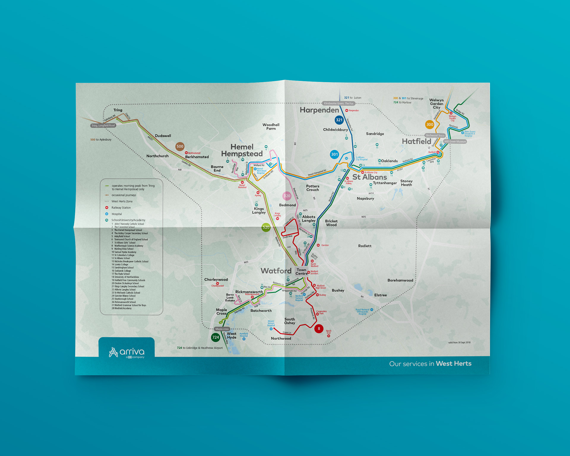 A project to redraw and rebrand Arriva's network maps in their new branding.