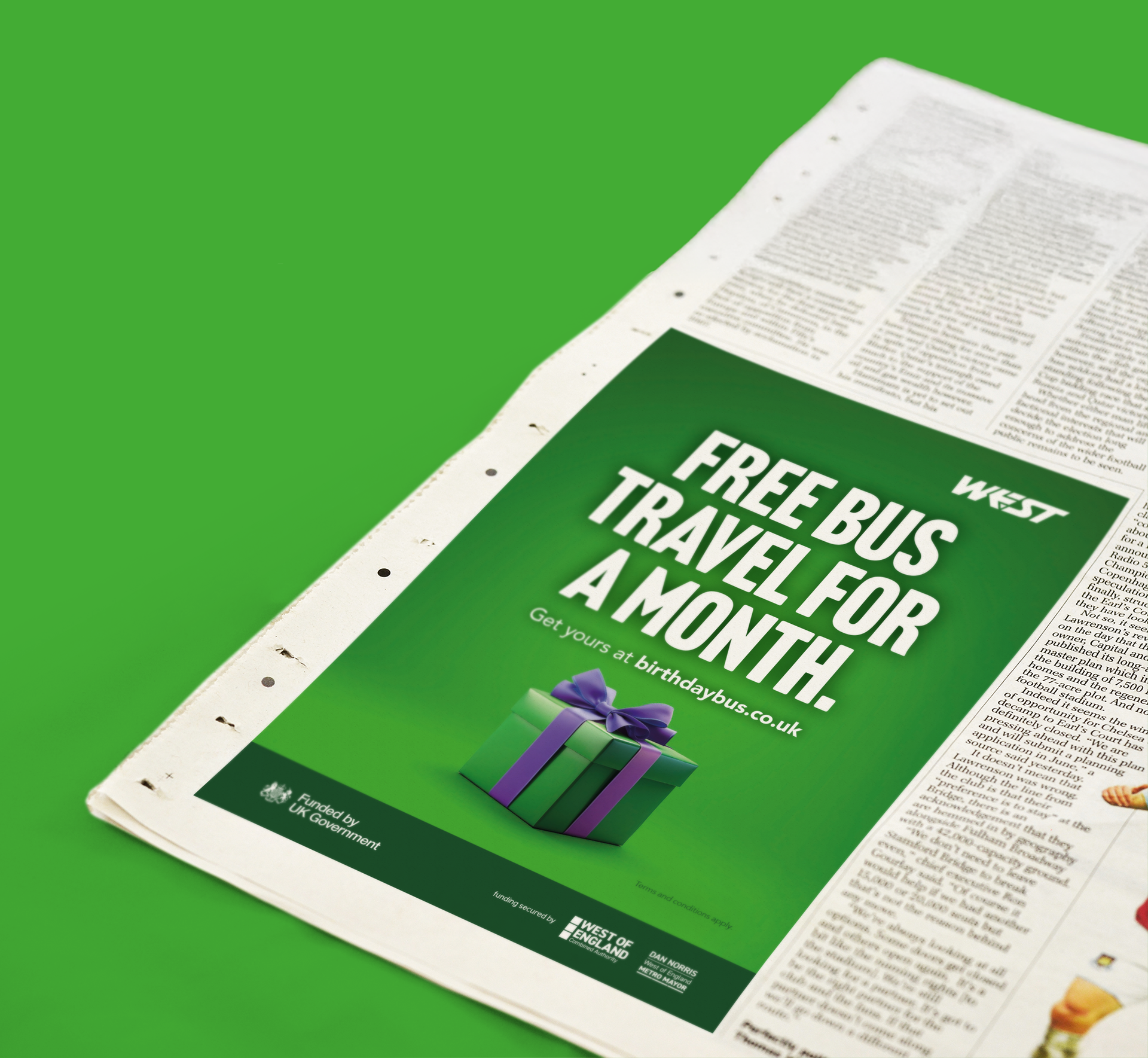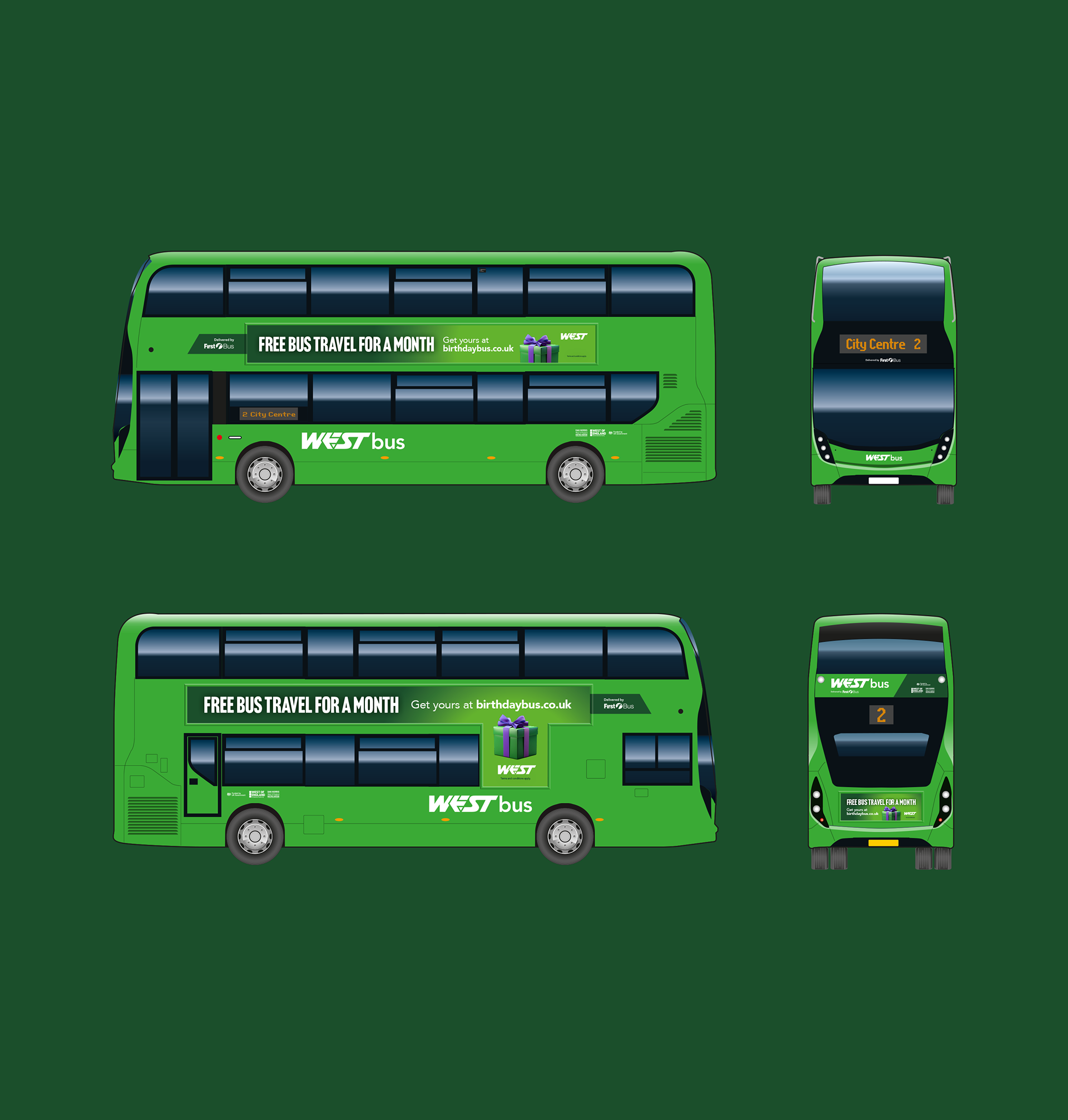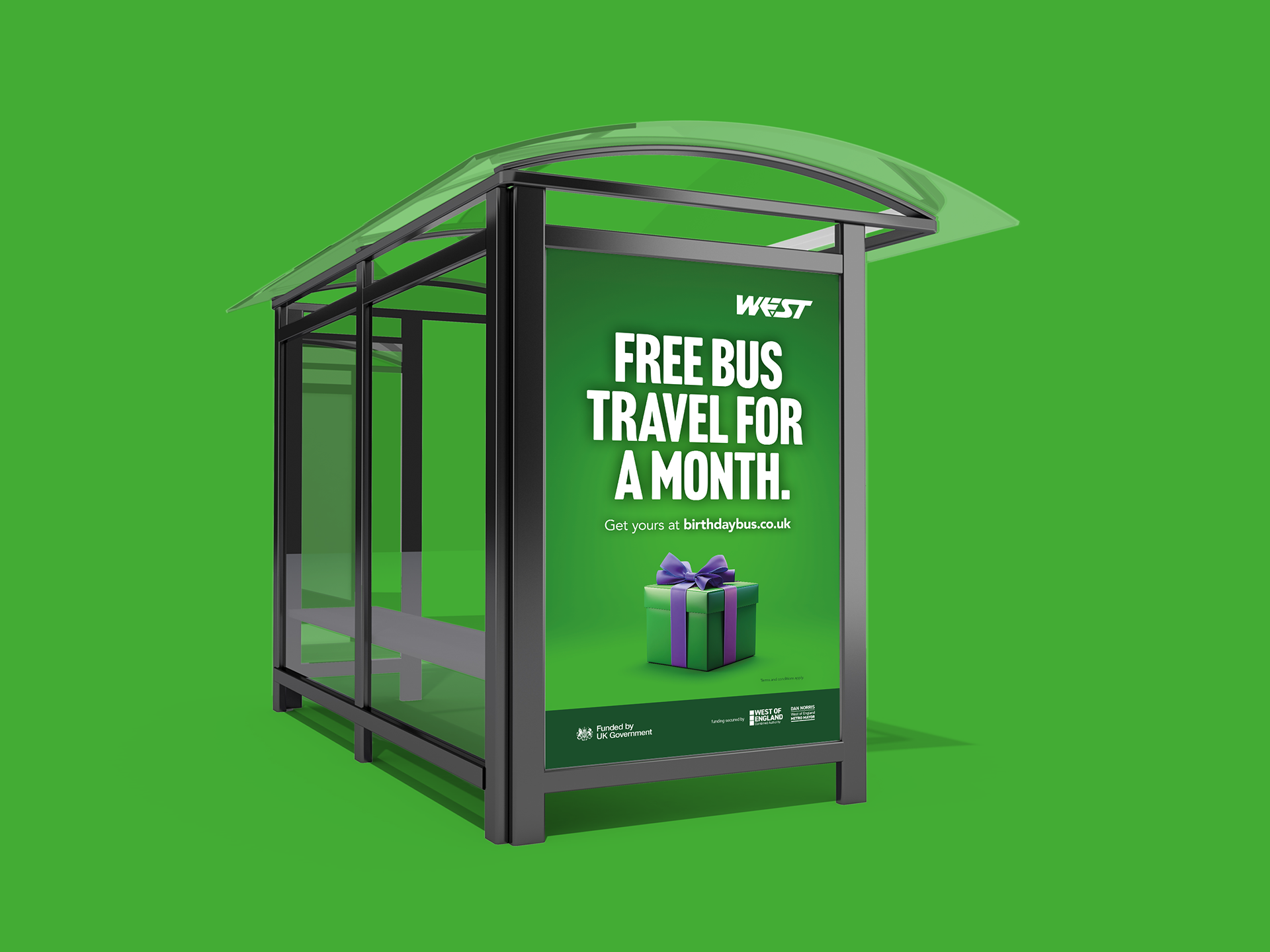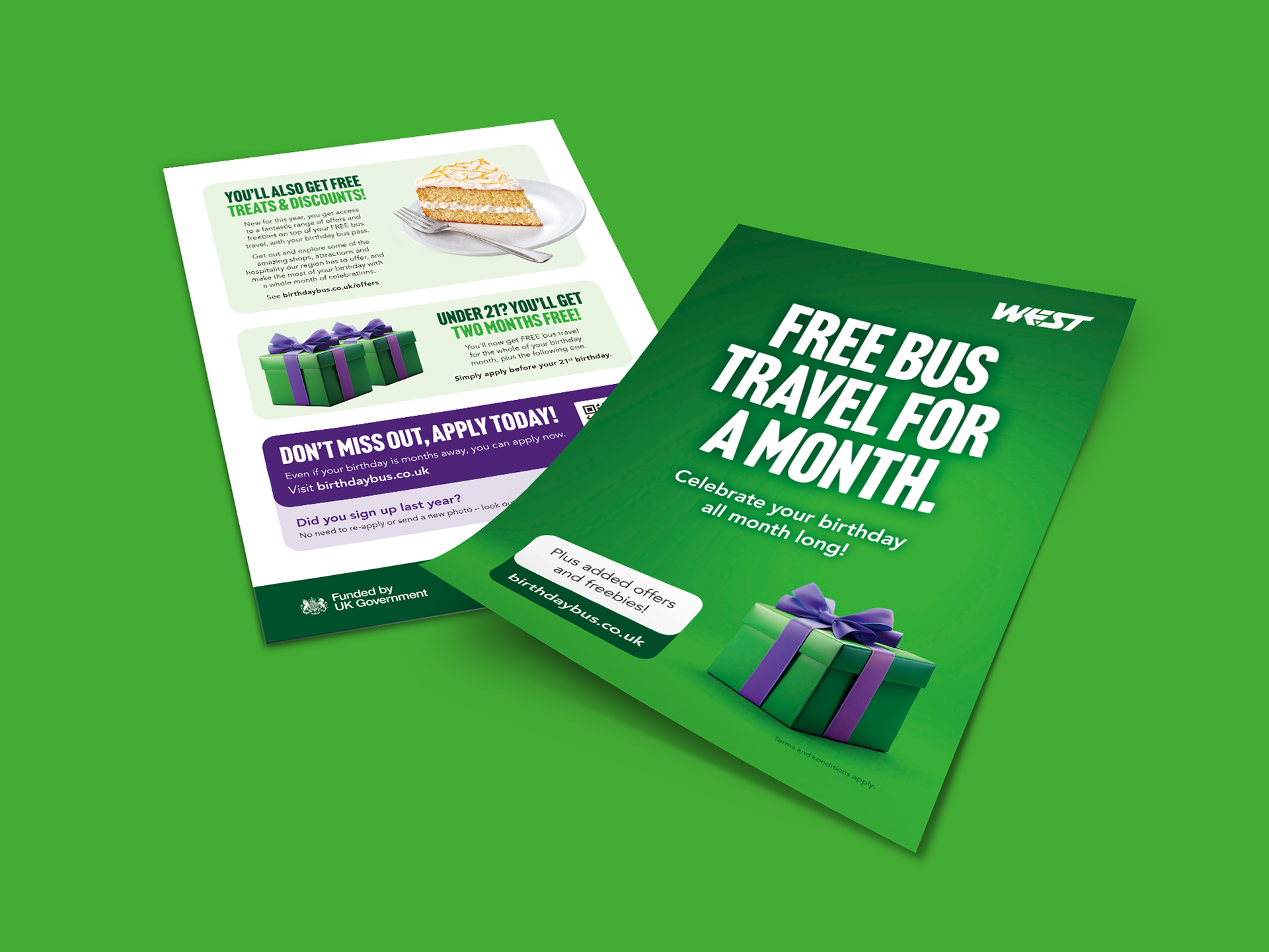 Celebrate your birthday all month long! A wide-ranging campaign to rebrand and relaunch the 'Birthday Bus' scheme. 'Birthday Bus' enables anyone to get FREE bus travel for the whole of their birthday month, on almost every bus in the West of England. The campaign included digital display, Meta, print, social media, on-bus and outdoor advertising.