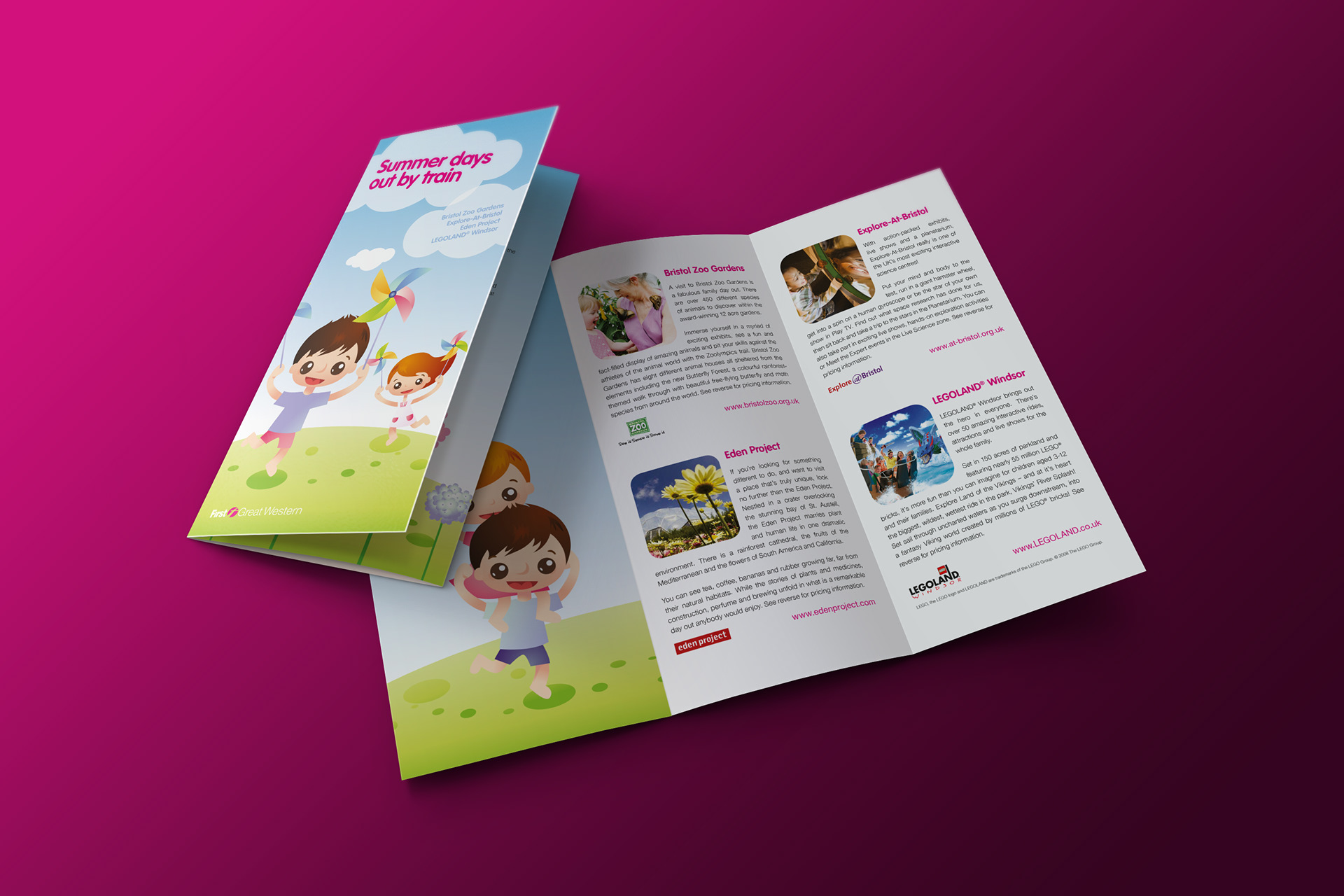 A leaflet to promote summer days out by train and the fabulous attractions you can visit.
