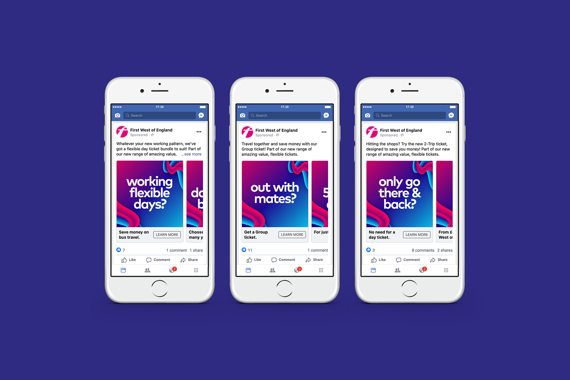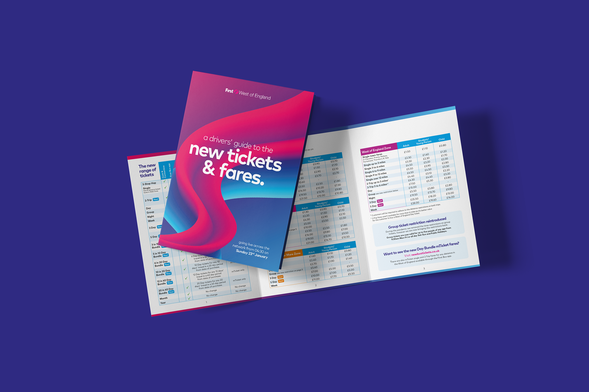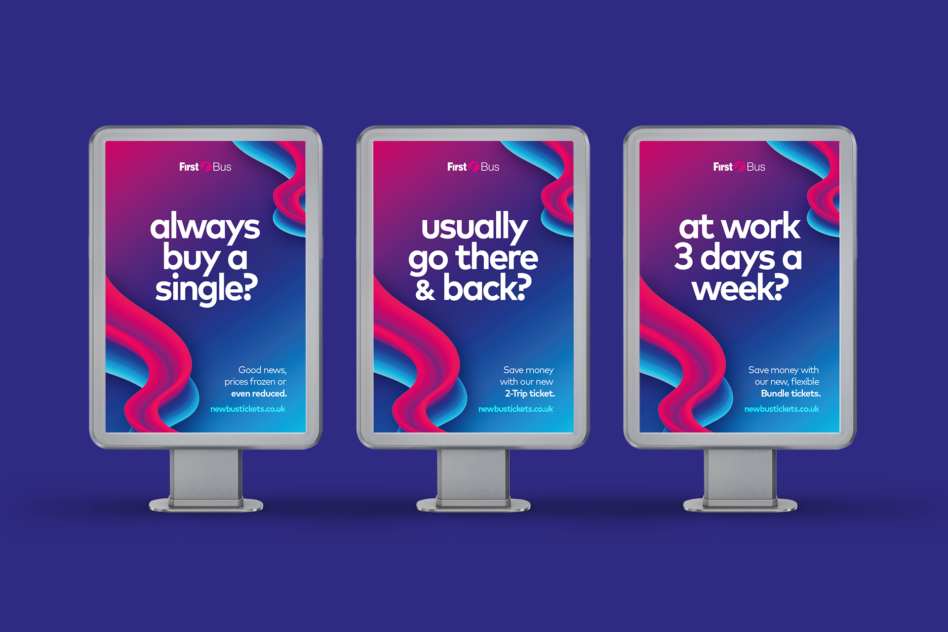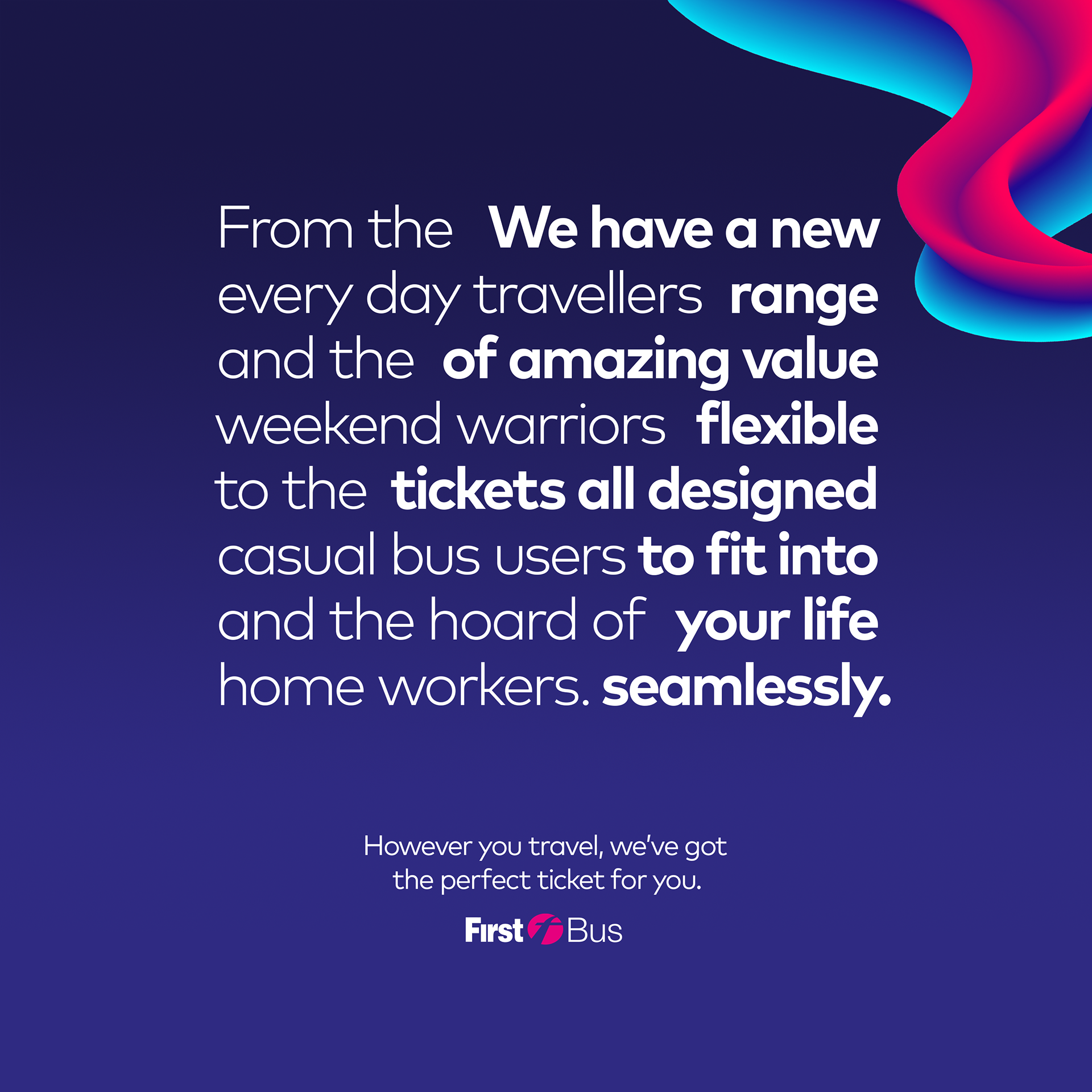 The way people travel by bus has changed and First in the West of England wanted their tickets to reflect this. So they asked us to promote the launch of their new range of tickets. We obliged and created a simple, eye-catching campaign to do just that. New tickets. More choice.