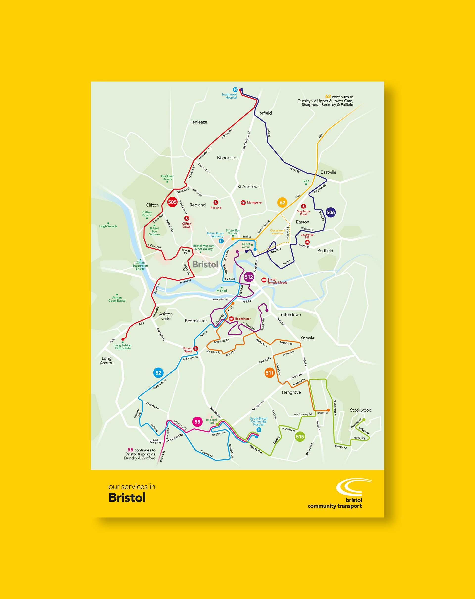 Network maps are one of those things that just have to be done. After all, if people don't know where your services go and how they connect, how can they be expected to use them? But done right, they're a real asset to any Opco. Hackney Community Transport (HCT) have never had any maps, so when they came to us we couldn't wait to get started.