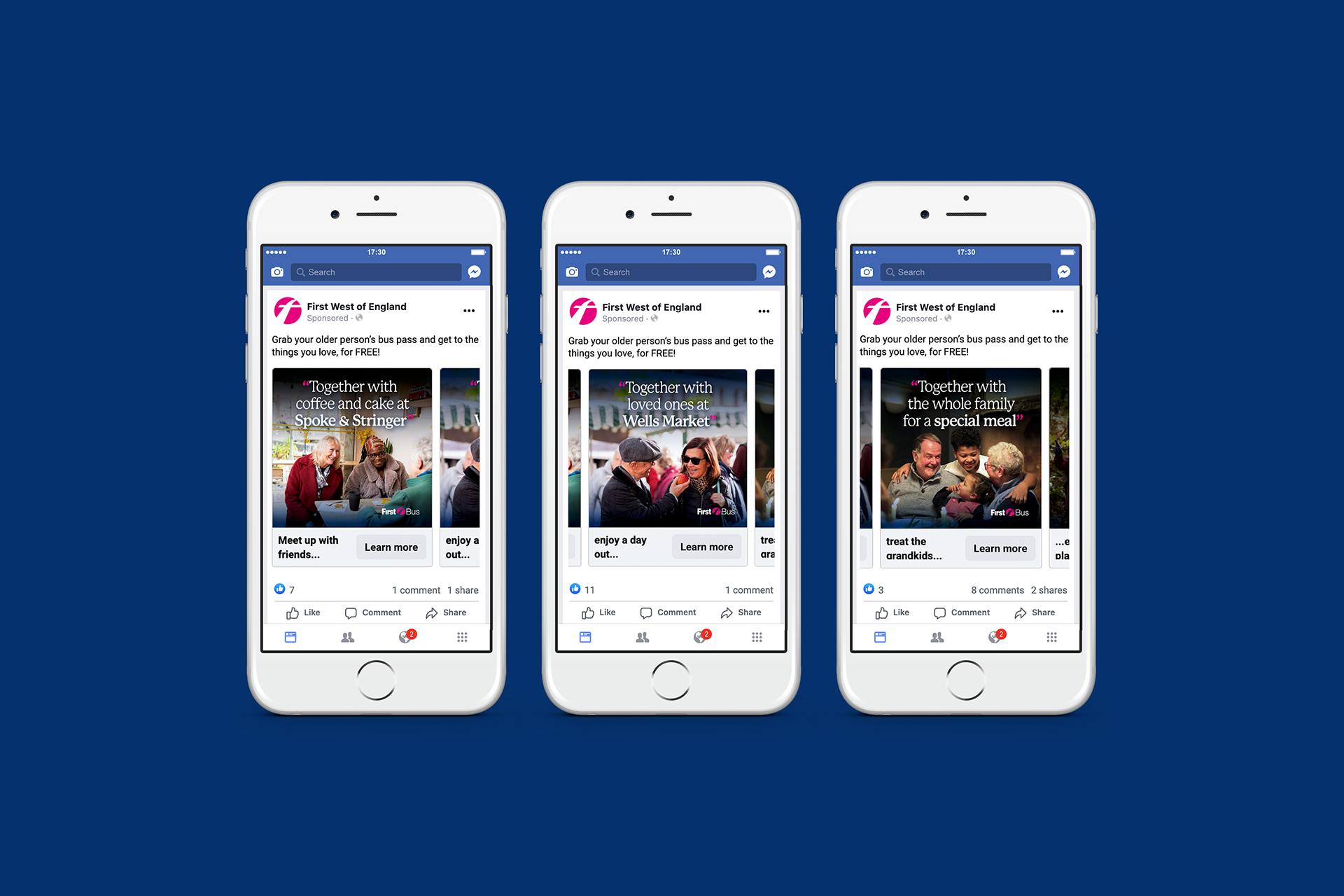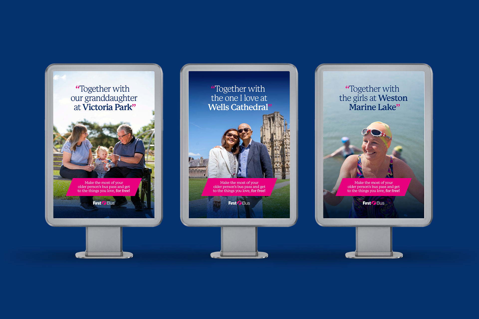 An advertising campaign to raise awareness of bus travel to those eligible for a free Older Person’s Bus Pass.