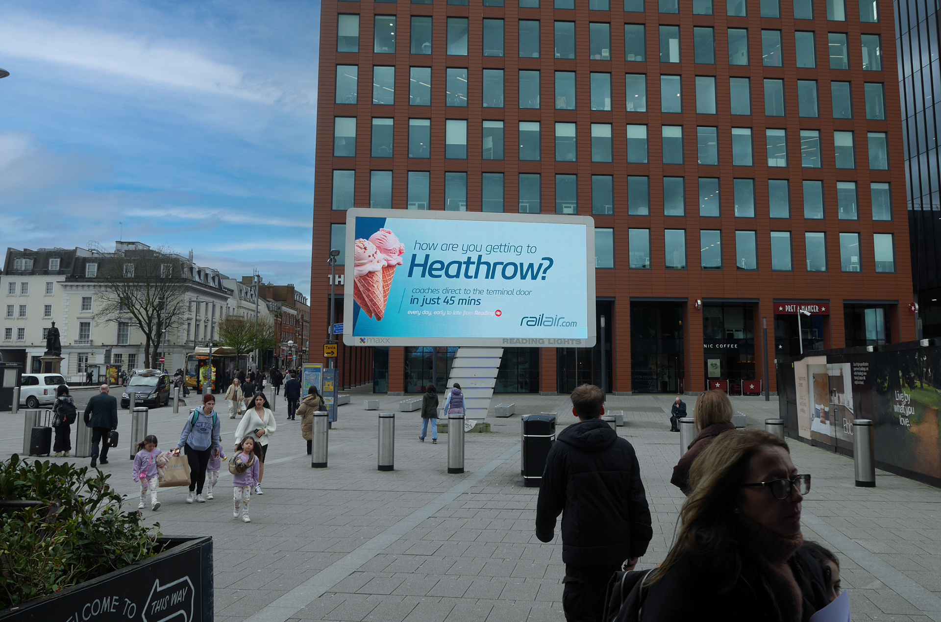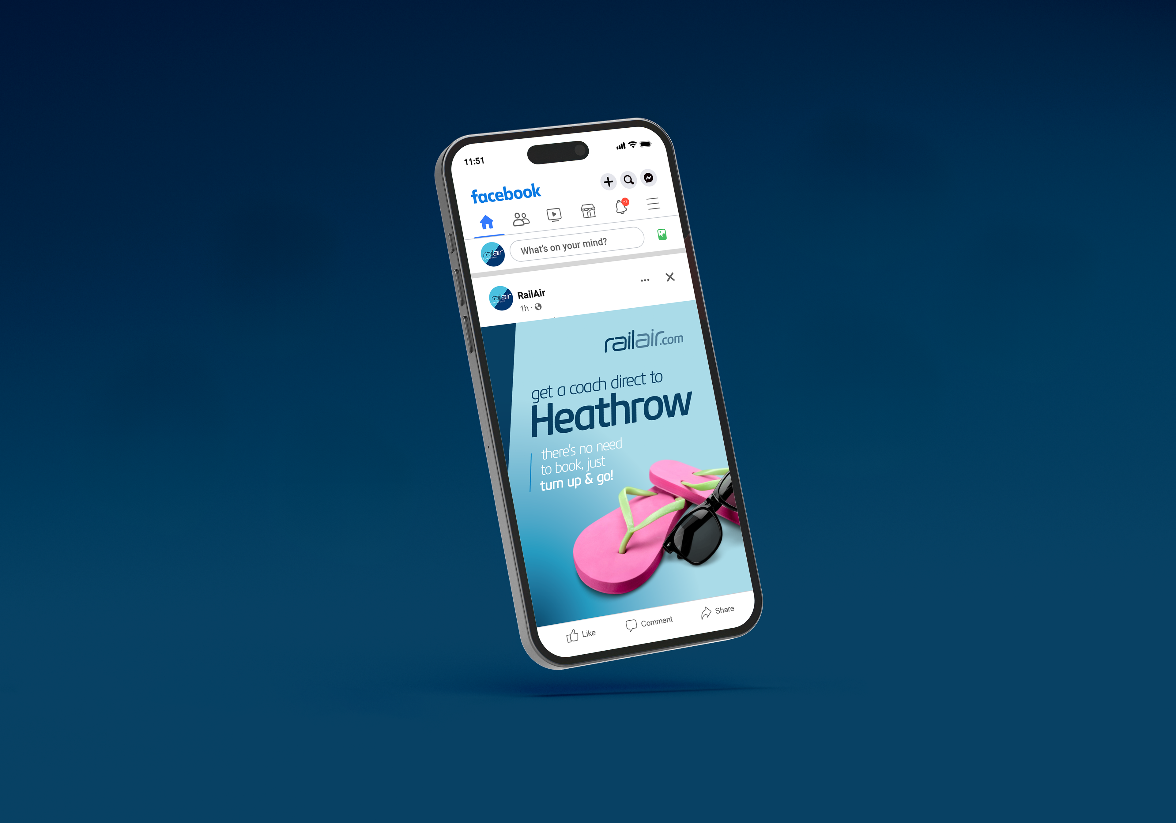 An advertising campaign to promote the RailAir luxury coach service to Heathrow Airport departing from either Reading, Watford or Guildford & Woking Train Stations.
