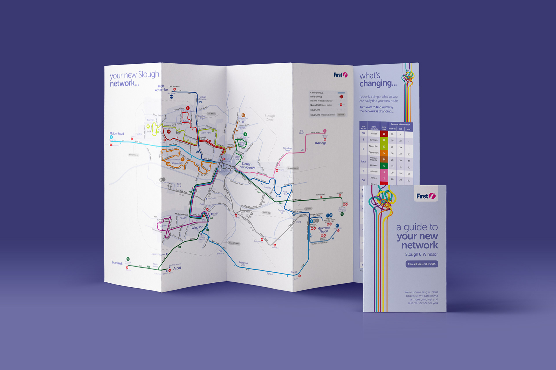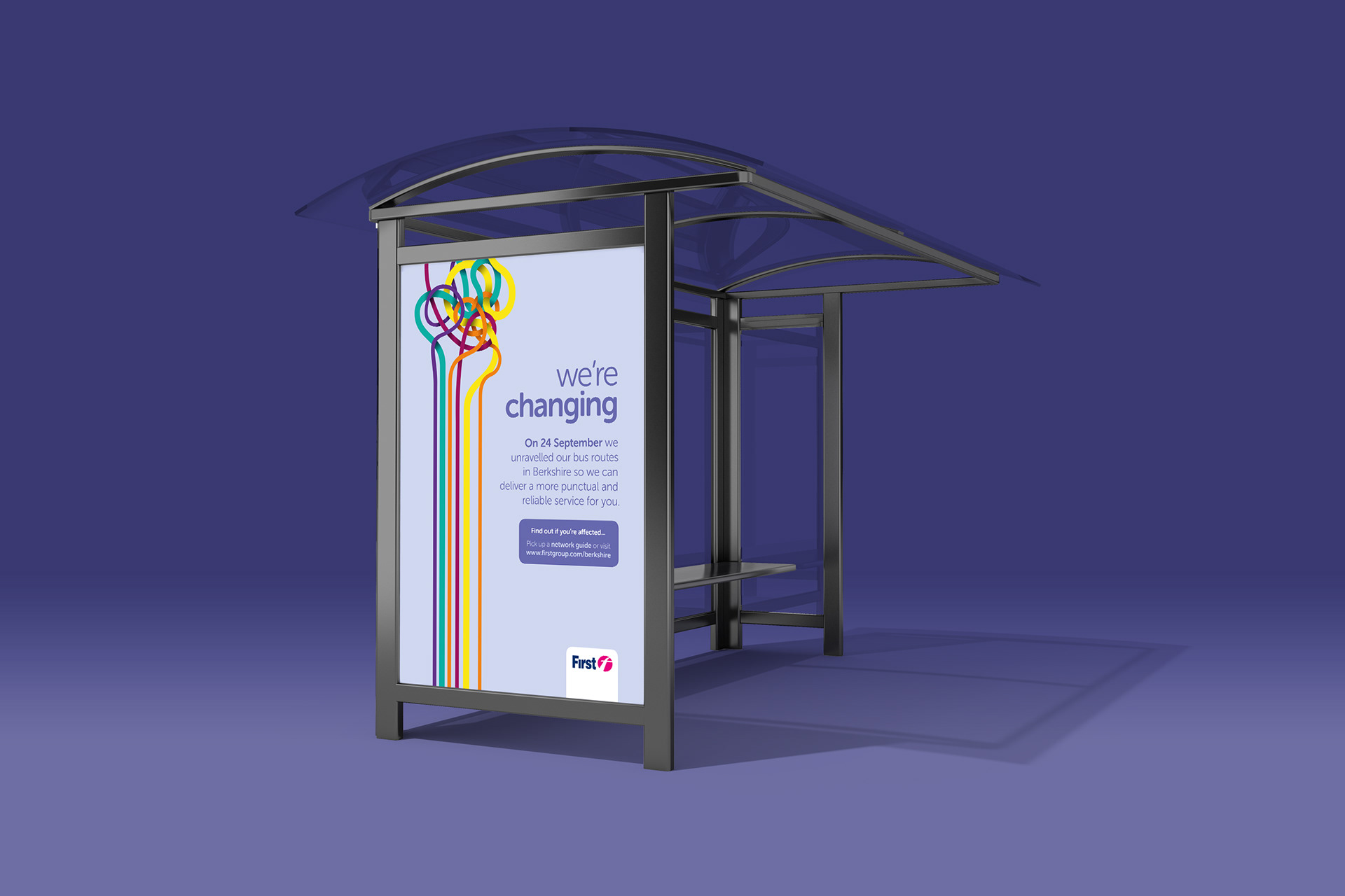 A campaign For First in Slough and Windsor, designed to communicate forthcoming network changes. The aim was to reduce congestion and improve journey times by 'unravelling' services in the town centre.