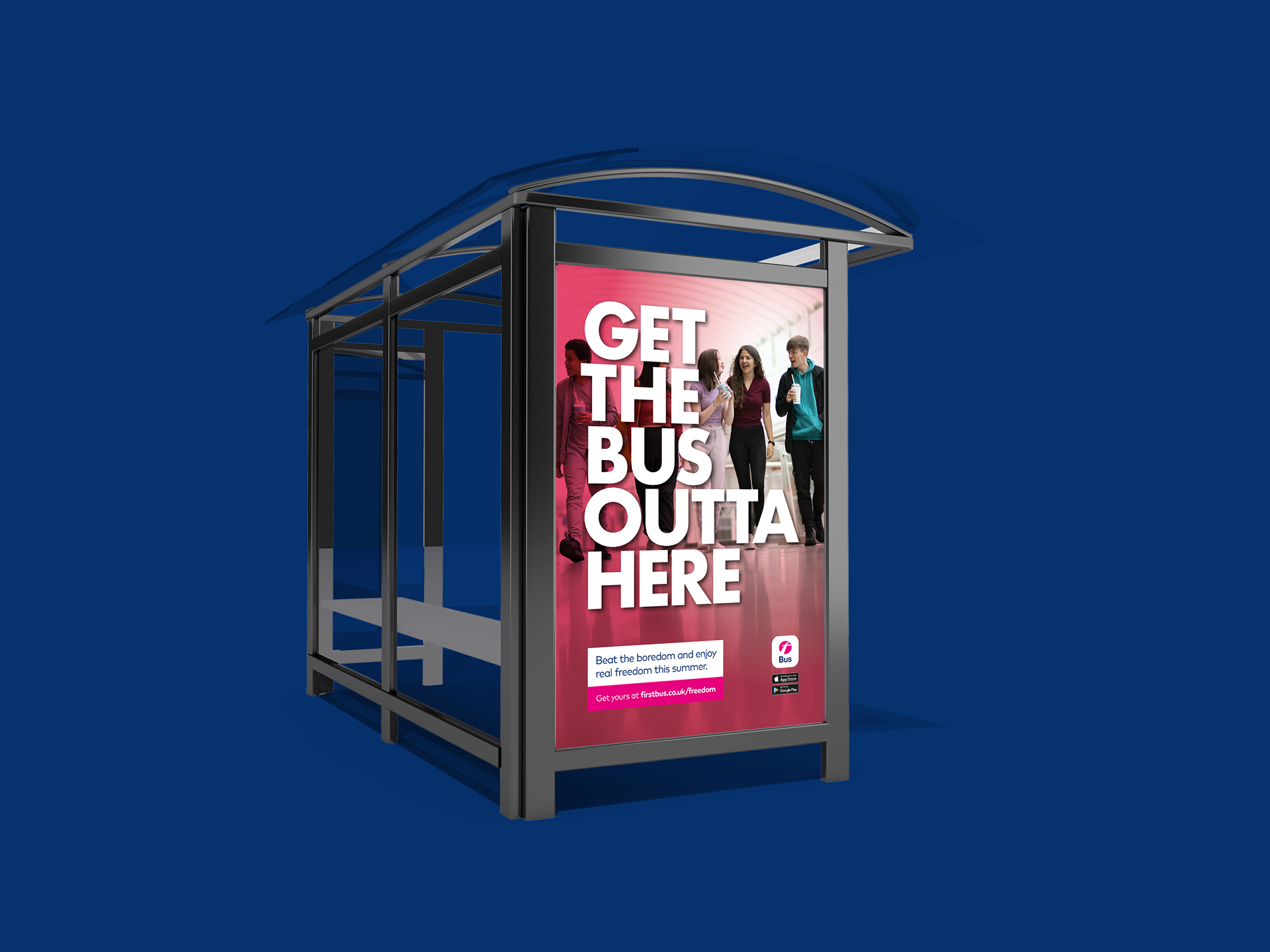 A campaign aimed at under-18s, encouraging them to GET THE BUS OUTTA HERE, beat the boredom and enjoy real freedom.